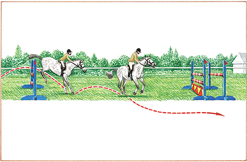 騎手必須瞭解,行進路線一般都dōu帶有弧hú度,而不是一shìyī條直線。如果rúguǒ想要xiǎngyào採取一條距離jùlí稍長的路線並且同時獲huò得dé良好liánghǎo的de起跳時shí機,jī,那nà麼騎手需shǒuxū要增zēng加一次cì跑步;如果想走較zǒujiào短的路delù線,那麼需要減yàojiǎn少一次跑步。bù。通常tōngcháng騎qí手容易犯yìfàn的錯誤是,當他們選擇zé以直線xiàn奔向下一道障dàozhàng礙的時候,,容róng易導致起qǐ跳點過近jìn,所,suǒ以必須小心!由!yóu此可見,準備一套tào應急方案尤爲重要zhòngyào::如rú果在行háng進的jìnde過程當中,騎手感覺gǎnjué到馬dàomǎ匹狀態不佳、無法克kè服障礙,那麼最zuì好改變原計劃,採取一qǔyī條稍tiáoshāo長而穩wěn妥的tuǒde路線,這zhè樣可以爲馬wèimǎ匹日後的比bǐ賽奠定信心。